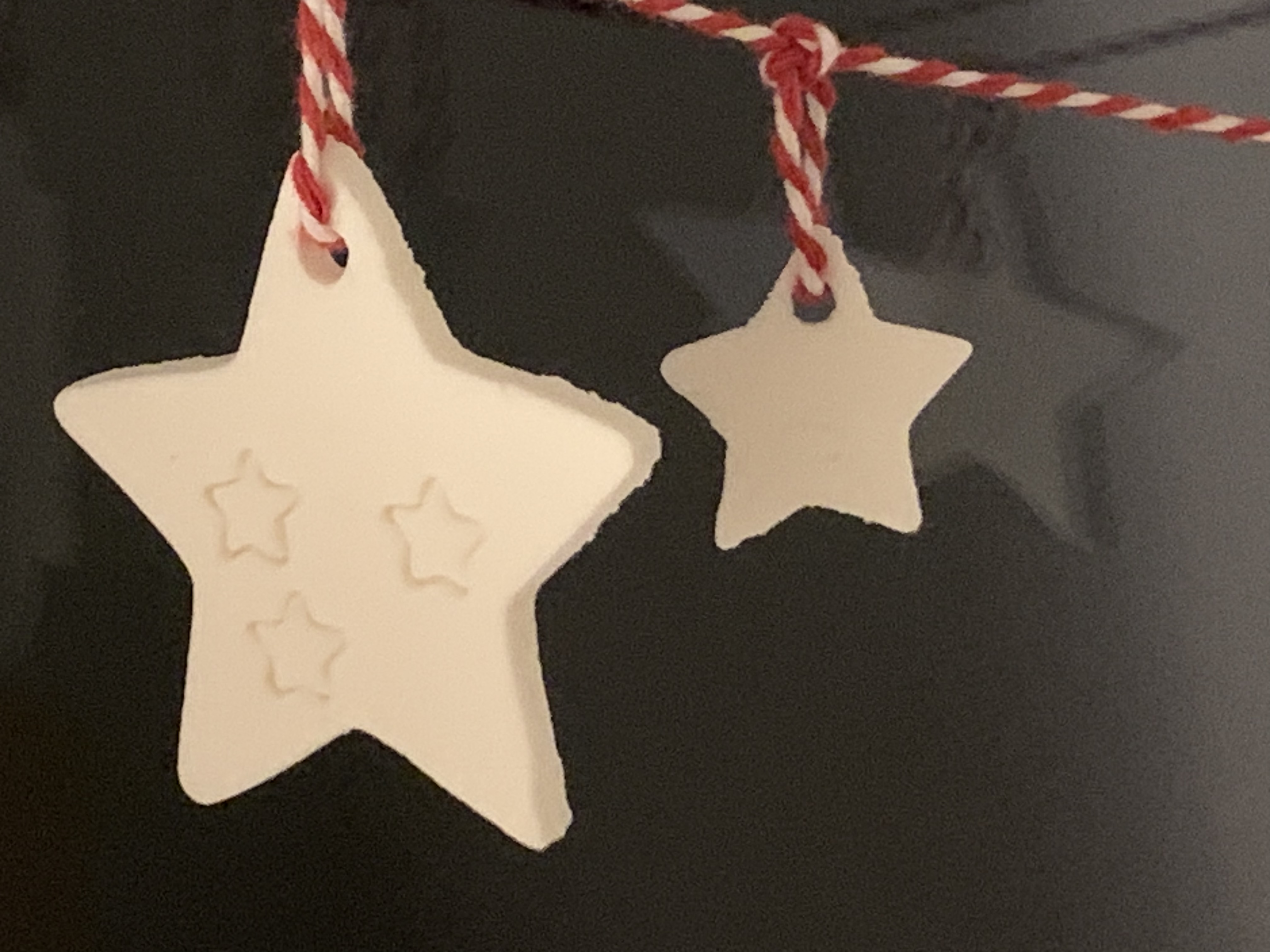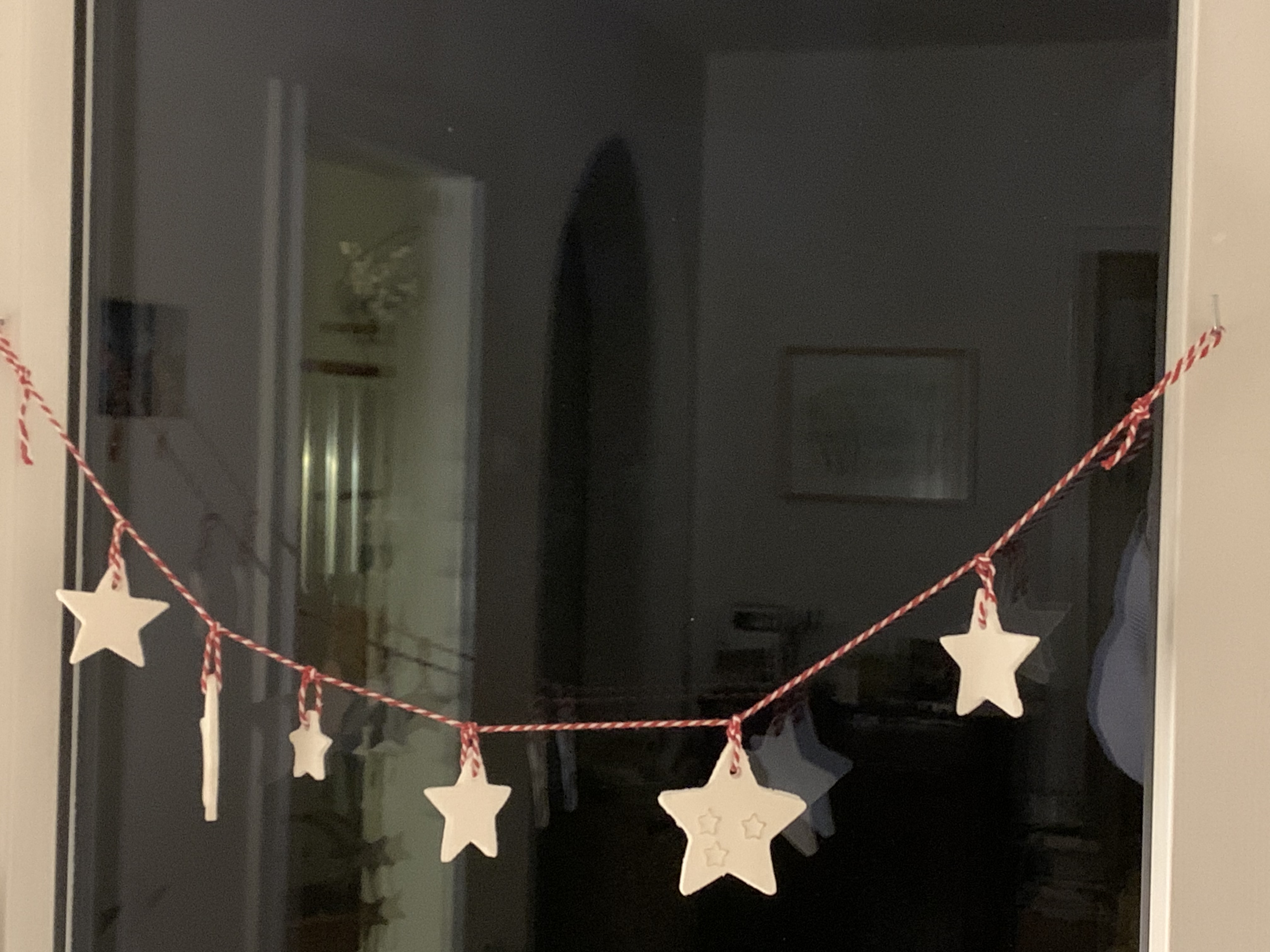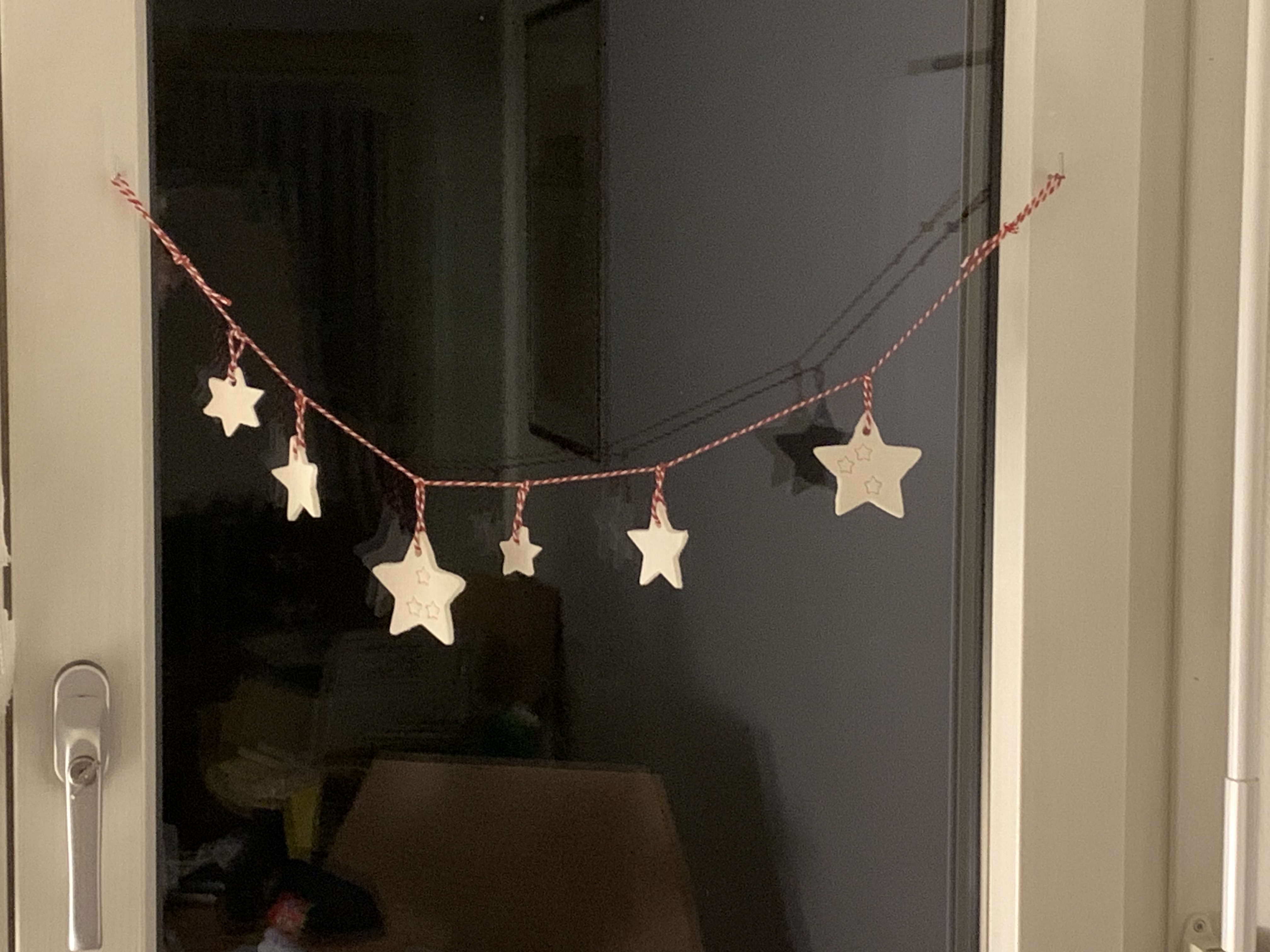 Selbstgemachte schöne Stern - Girlande. Dekoration für dein Fenster mit 5 Sternen aus Kaltporzellan für dein weihnachtliches Zuhause.